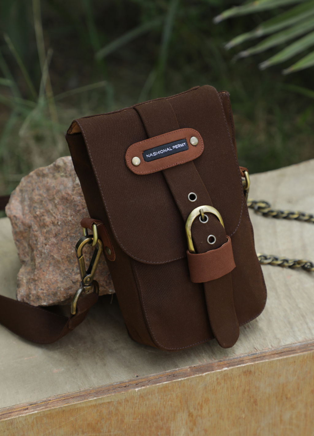 Crafted with a deep brown hue and durable material, this satchel exudes a rugged charm. The bag features a brass buckle and stud detailing, giving it a vintage touch. Equipped with a detachable strap and sturdy D-ring clasp, it...