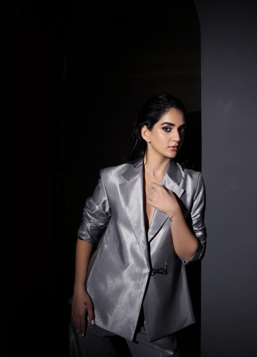 The Granite Co-ord features a stylish snatched-waist blazer with a V neckline and long sleeves, adorned with striking metal elements on the sleeves. Paired with a high-waisted pencil skirt, this set is crafted from a te...