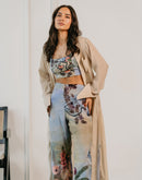 Gossip Garden is where soft meets scandal. A fluid co-ord in dreamy botanicals and mood-kissed hues, made for the girl who hears everything and says just enough. From lazy brunches to whispered secrets, this set flows with every move — because looking good while catching tea is a non-negotiable. Finished with a breezy overlay to keep it cool when things heat up.
