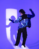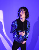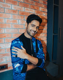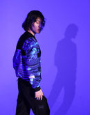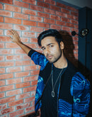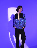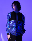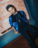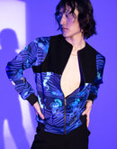 Make a statement with our bold printed bomber jacket. The design features a unique element of plain black fabric, forming a cage in the front that adds a touch of edginess to the overall look. The jacket is made with high-quality material, ensuring both comfort and durability. Whether you're dressing up or down, our printed bomber jacket is the perfect addition to any outfit. Experience the ultimate in style and sophistication with our jacket today.