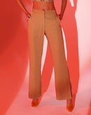 Elevate your everyday style with our comfortable and chic pants. Featuring a slight bell-bottom cut and slits on the side, these pants offer a modern take on a classic look. The front zip and belt add a touch of sophistication, while the comfortable material ensures you'll feel as good as you look. Perfect for a day at the office or a night out, these pants are versatile enough to take you anywhere. Upgrade your wardrobe with our stylish and comfortable pants today.