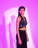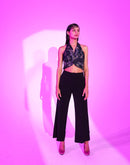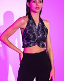 Introducing our stylish halter neck crop top, featuring delicate ruffles at the bottom and a sleek concealed zip closure at the back. This top is the perfect addition to any fashion-forward wardrobe, adding a touch of feminine charm to any outfit.