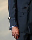 Step into timeless elegance with our men's double-breasted blazer. The front buckle closure and sleeve buckles add a touch of sophistication, complementing the notched lapel for a classic look. Convenient flap pockets in the front enhance both style and functionality.