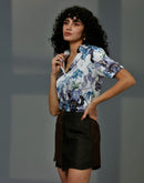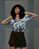 Printed shirt with classic collar, half sleeves and front button closure.