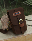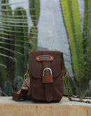 Crafted with a deep brown hue and durable material, this satchel exudes a rugged charm. The bag features a brass buckle and stud detailing, giving it a vintage touch. Equipped with a detachable strap and sturdy D-ring clasp, it’s both functional and stylish. The Nashional Permit branding adds a signature touch to this practical and versatile piece.