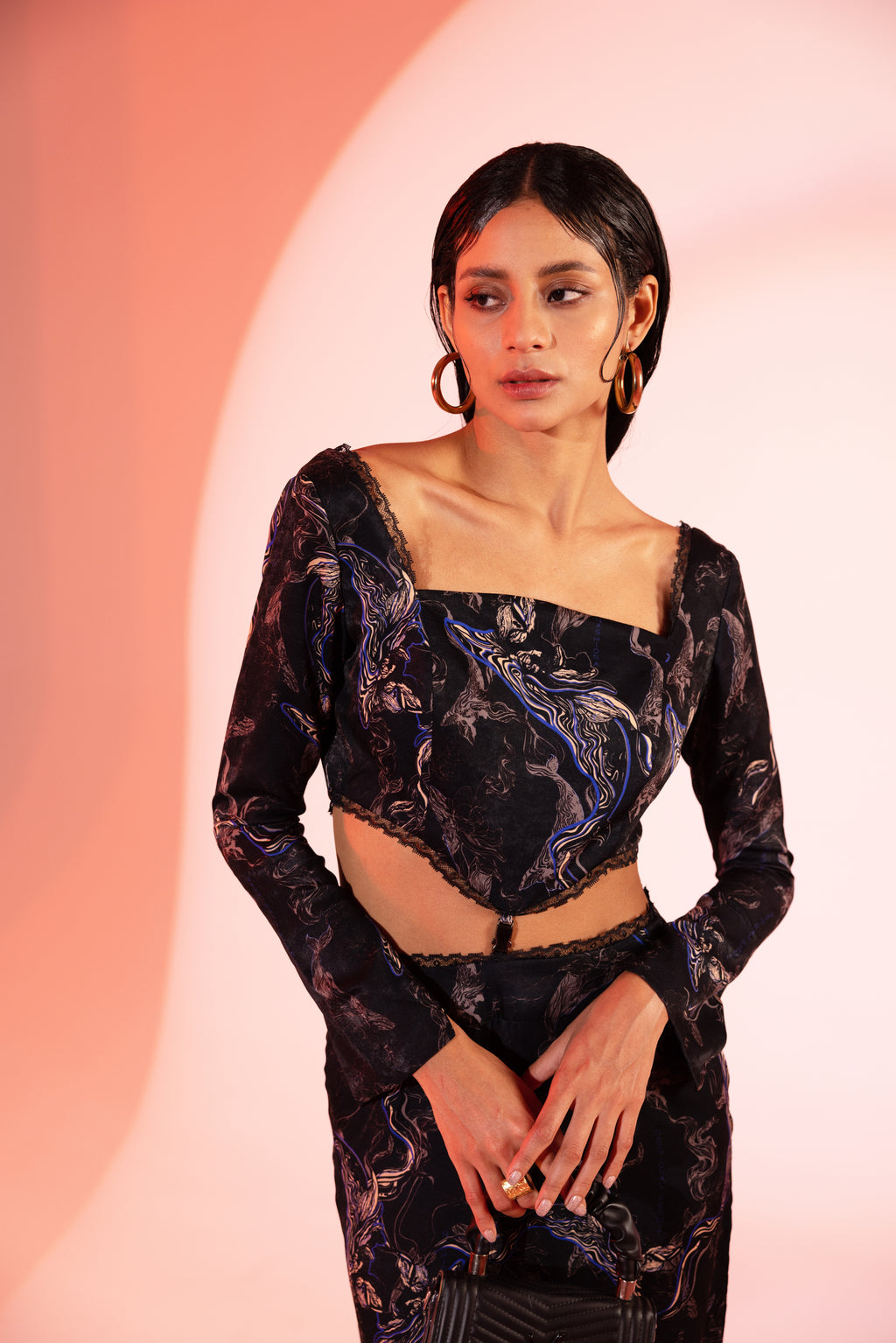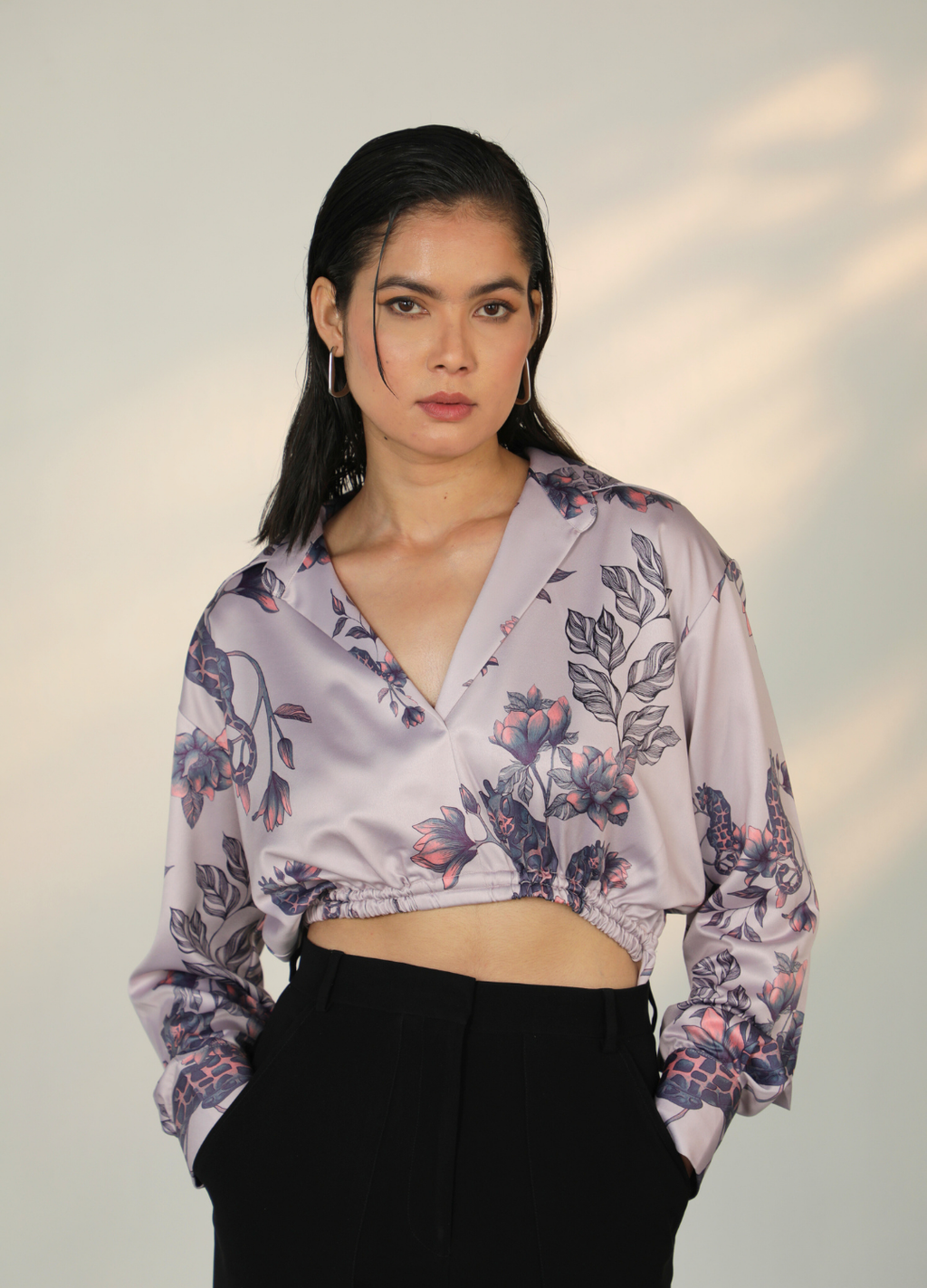 Upgrade your wardrobe with our stylish printed crop shirt, featuring a classic collar, full sleeves with cuffs. The elastic waist ensures a flattering fit, enhanced by adjustable drawstrings. The perfect combination of comfort ...