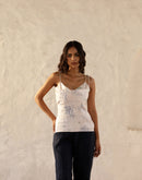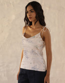 Jardim Luz pleated top features delicate tie-up spaghetti straps, allowing for a customizable fit. The fine pleats cascading down the front create a mesmerizing flow, while multiple panels enhance its silhouette. Crafted from lightweight fabric, this top is perfect for leisurely days or effortlessly layering.