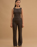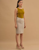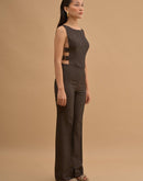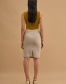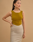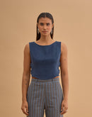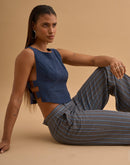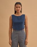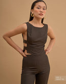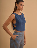 Crop top with 4 metal buckles on the sides. Concealed zip closure in back.