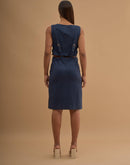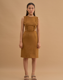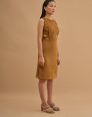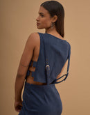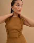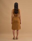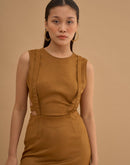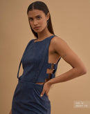 Studded Dungaree skirt with adjustable shoulder straps and side slits.