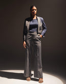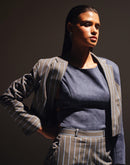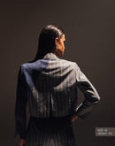 Boxy cropped blazer with swirl panel. Slim notched Lapel collar with front slit sleeves. Concealed button fastening.