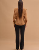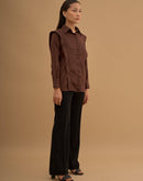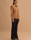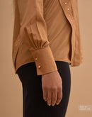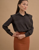Paneled Shirt with classic collar, long sleeves with buttoned up cuff and concealed button closure with studded panels.