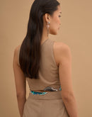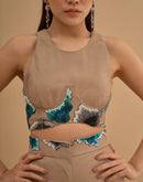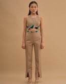 Pencil/ cigarette pants with hand embroidered belt. Front slits at bottom.