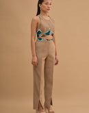 EMBRIODERED ANKLE SLIT STRAIGHT PANTS