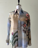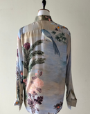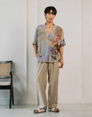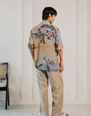 Cut in a breathable, feather-light cotton blend, this shirt is tailored with a relaxed fit and a classic camp collar. Fine single-needle stitching gives it a polished edge, while the custom print — birds mid-perch over layered botanicals — brings quiet drama. Soft on skin, sharp in finish, and built for slow entrances that still get noticed.