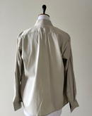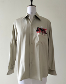 A minimal button-down in the softest sage— elevated with a quiet twist. Tailored in airy, summer-weight cotton, this shirt features asymmetric pleat detailing and a delicate, hand-cut floral cluster blooming from the chest — detachable, depending on your mood. It’s subtle, surprising, and effortlessly fresh. Just like its name.